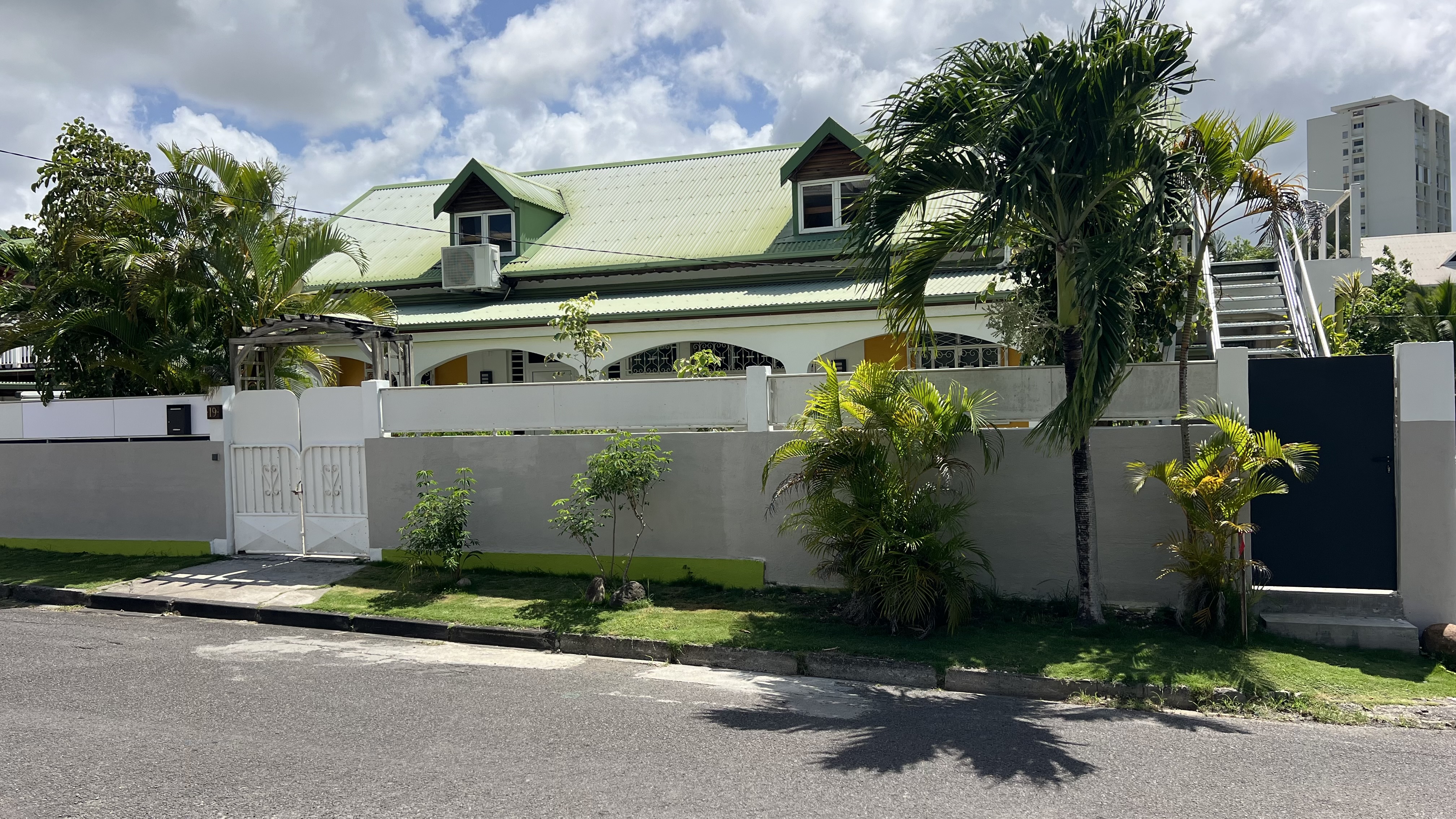 Maison familiale où il fait bon vivre avec la nature à sa porte. Ses atouts : son calme, sa tranquillité et sa citerne // Pas de coupure d'eau ♥ 3 chambres climatisées de 10m² équipées d’un lit double 140x190 ♥ 1 chambre climatisée de 13m² équipée de 2 lits simples 90x190 avec jacuzzi attenant à la terrasse. ♥ 1 salle de bain complète de 7m² ♥ 1 salle d'eau complète de 2,50m² ♥ Cuisine équipée de 16m² ouverte sur le salon ♥ Hall d’entrée, canapé, salle TV de 18m² ♥ Terrasse en L de 36m² orientée Est-Sud-Est avec salon de jardin, hamac et jacuzzi (2 places allongées et 1 place assise) ♥ Galerie de 27m² orientée Ouest avec sa table ovale 180x260x110 en Teck, son barbecue à gaz et son jardin paysager (entrée principale) ♥ Internet très haut débit et offre Livebox Infini Antilles-Guyane et 90 chaînes de la TV d’Orange. ♥ Citerne eau de ville de 2200 litres pour ne pas subir les coupures d'eau récurrentes sur l'île. |