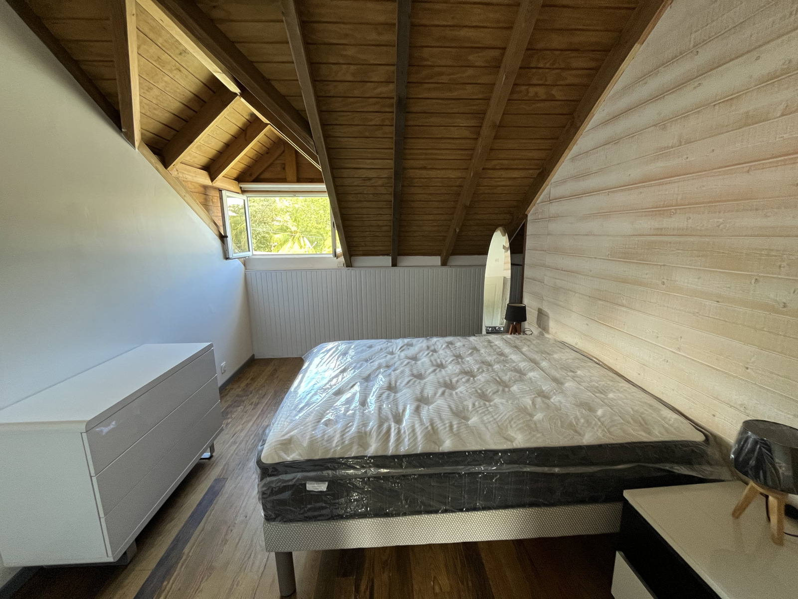Disponibilité prévue le 7 août 2026. En cours de travaux d'agencement et de réorganisation ‼️ De nouvelles photos seront mises en ligne au fur et à mesure. En attendant voici un aperçu 🙏 Nous vous accueillons dans notre joli T3 moderne, c'est un appartement en mezzanine à l'allure de chalet situé à Bas-du-Fort au Gosier. C'est le haut de notre villa Aloha qui nous Inspire 😀. Idéal pour les amoureux du bois. L'intérieur de la mezzanine est couvert par le réseau Wifi de la fibre Orange. Le quartier du Bas du Fort est situé entre la Marina du Gosier et le bourg du Gosier. Vivre à Bas-du-Fort c'est éviter un maximum les embouteillages des heures de pointes et permettre de visiter aisément notre belle île.