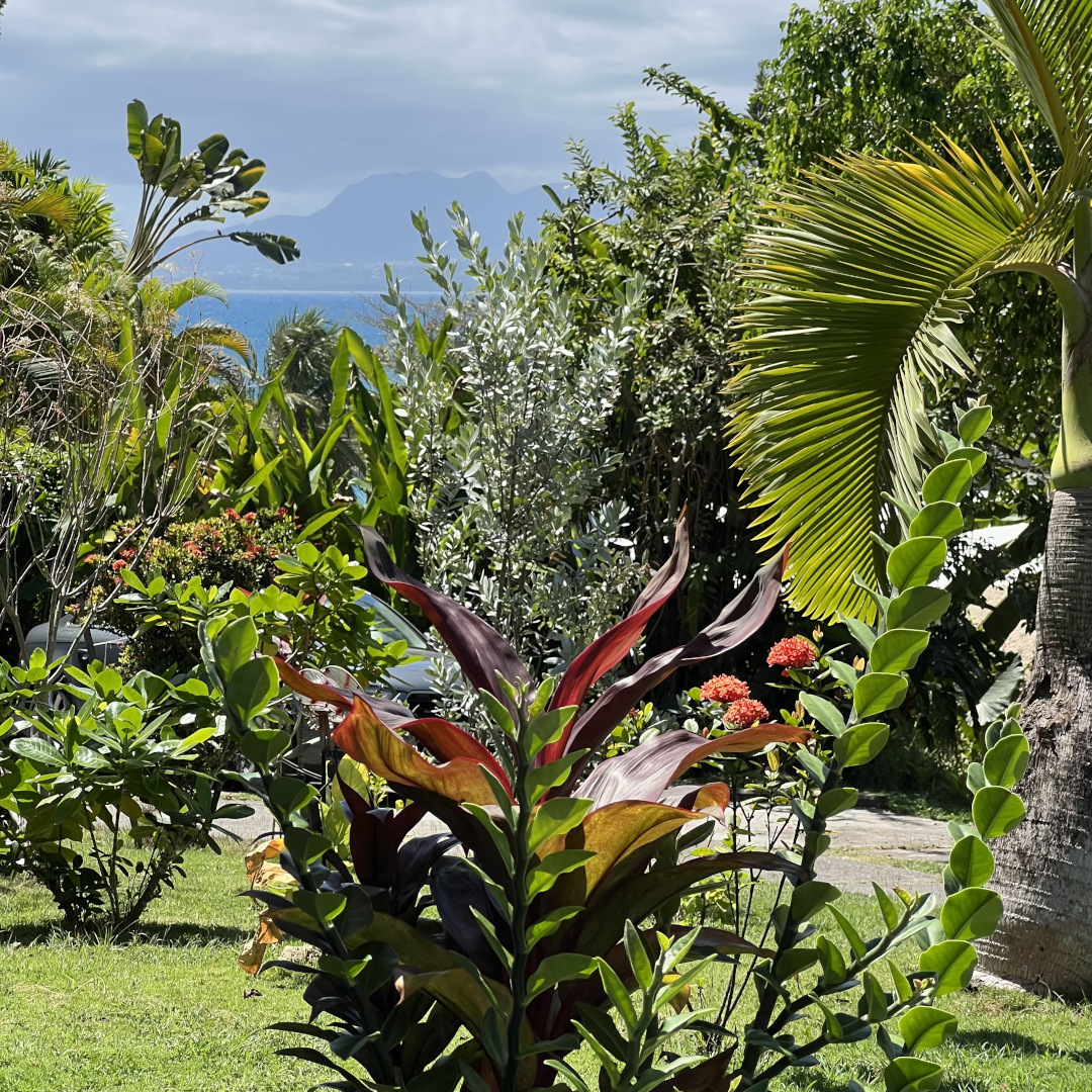 Sur un terrain d'une sperficie de 718 m², vous découvrirez l'immeuble IXORA, construit en 1975. Cet édifice comprend 4 studios de plain-pied (Click😉 A Parme, B Soleil, C Rose zouk , D Fuchsia). L’entrée de chaque studio se fait par la terrasse avant (est) qui donne accès à la kitchenette, la salle d'eau, la chambre climatisée et la porte-patio ouvre sur le balcon arrière (ouest).